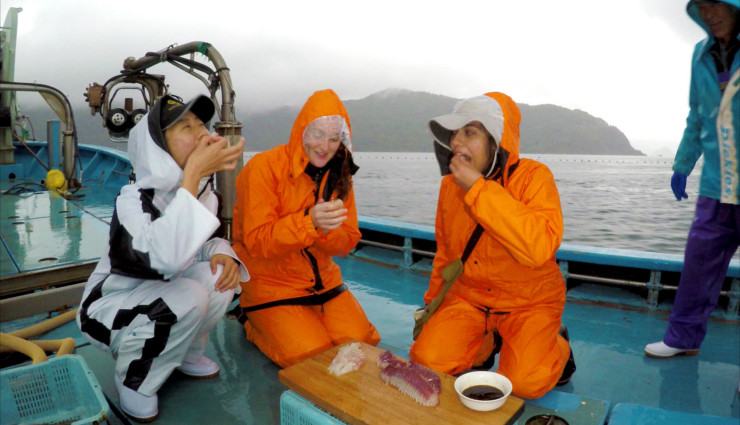 メーガン 漁船に乗るのはとても楽しくて面白かったです。旅のドキュメント番組を見て育ったので、今回は自分が旅のドキュメントに出ているような気分でした。漁師が一体になって仕事をするする姿は本当に素晴らしかったです。漁師さんがみんな自分の役割を果たしていました。船から落ちやしないかとハラハラしましたが、船の揺れはそんなにありませんでした(海が凪いでいたのはラッキーでした)。漁師は本当に強くてたくましいと思います。だって、船の上であれだけ自信を持って漁をするのですから。絶対に、もう一回、今回のような漁船に乗りたいです!」
