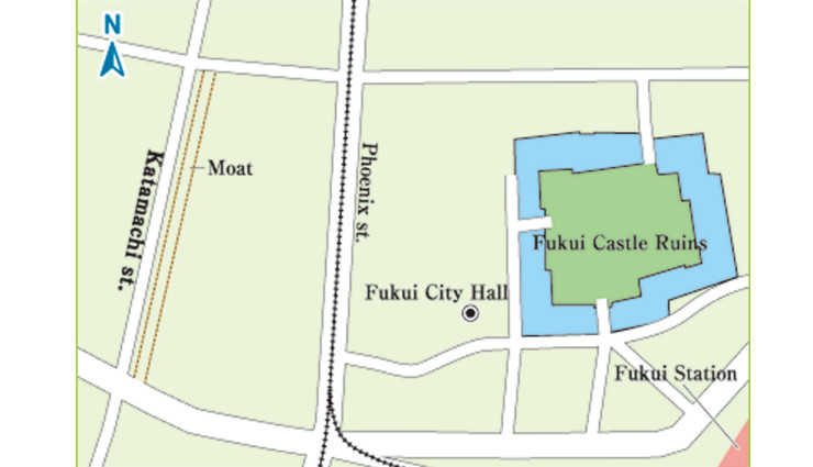 Katamachi literally means “one-sided town.” During the Edo era, there was a waterway of Fukui Castle running along the eastern side of the street, so the buildings lined up only on the western side. In the Meiji era, the waterway was buried. Both sides of the street were developed as a commercial and entertainment district that now includes movie theaters, play theaters, and Sunakku.
